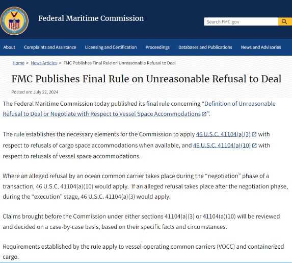近日,美國(guó)聯(lián)邦海事委員會(huì)(FMC)針對(duì)船公司不合理拒絕訂艙的行為發(fā)布了最終規(guī)則,該規(guī)則將于2024年9月23日正式生效。新規(guī)旨在禁止船公司無(wú)視合約、無(wú)理拒載、隨意甩柜以及拒絕與客戶就艙位進(jìn)行合同條款談判等行為,為貨主提供更多保護(hù)。